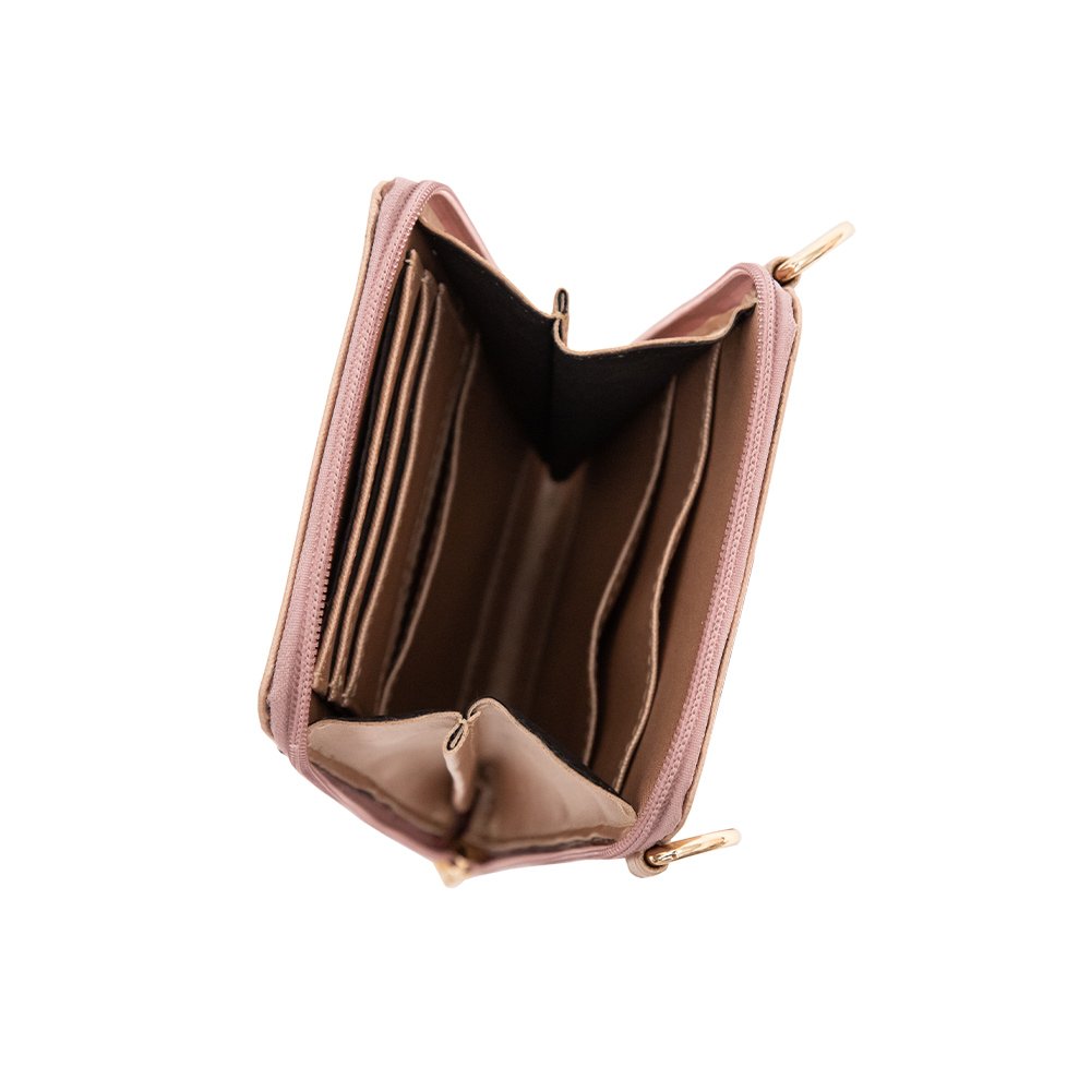 Capacidad cuenta con espacio para 2 tarjetas, espacio para 2 pasaportes, compartimento para algunos billetes, y teléfono celular delgado.