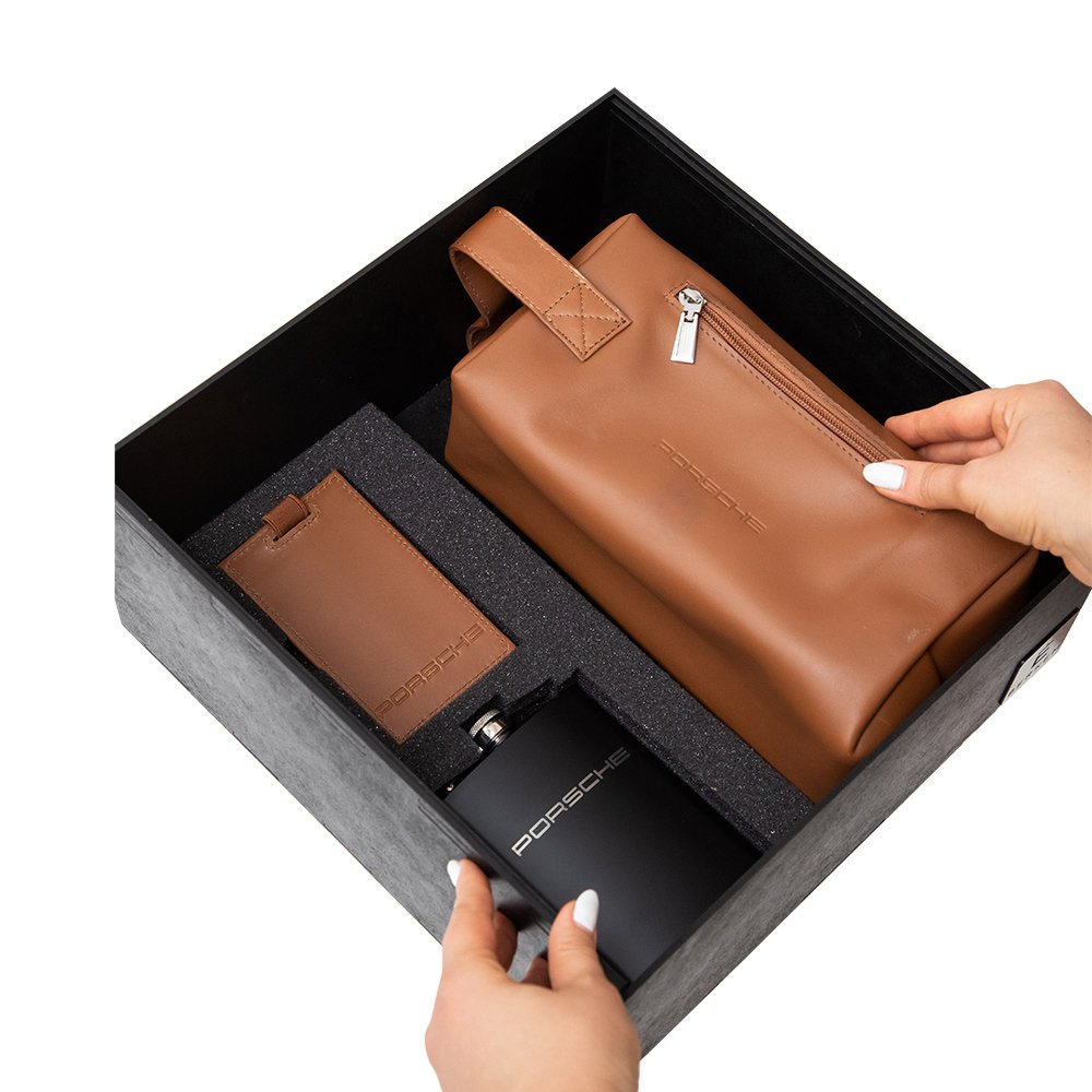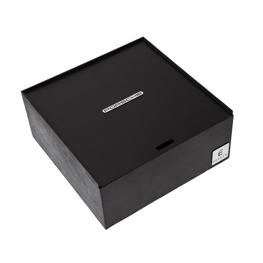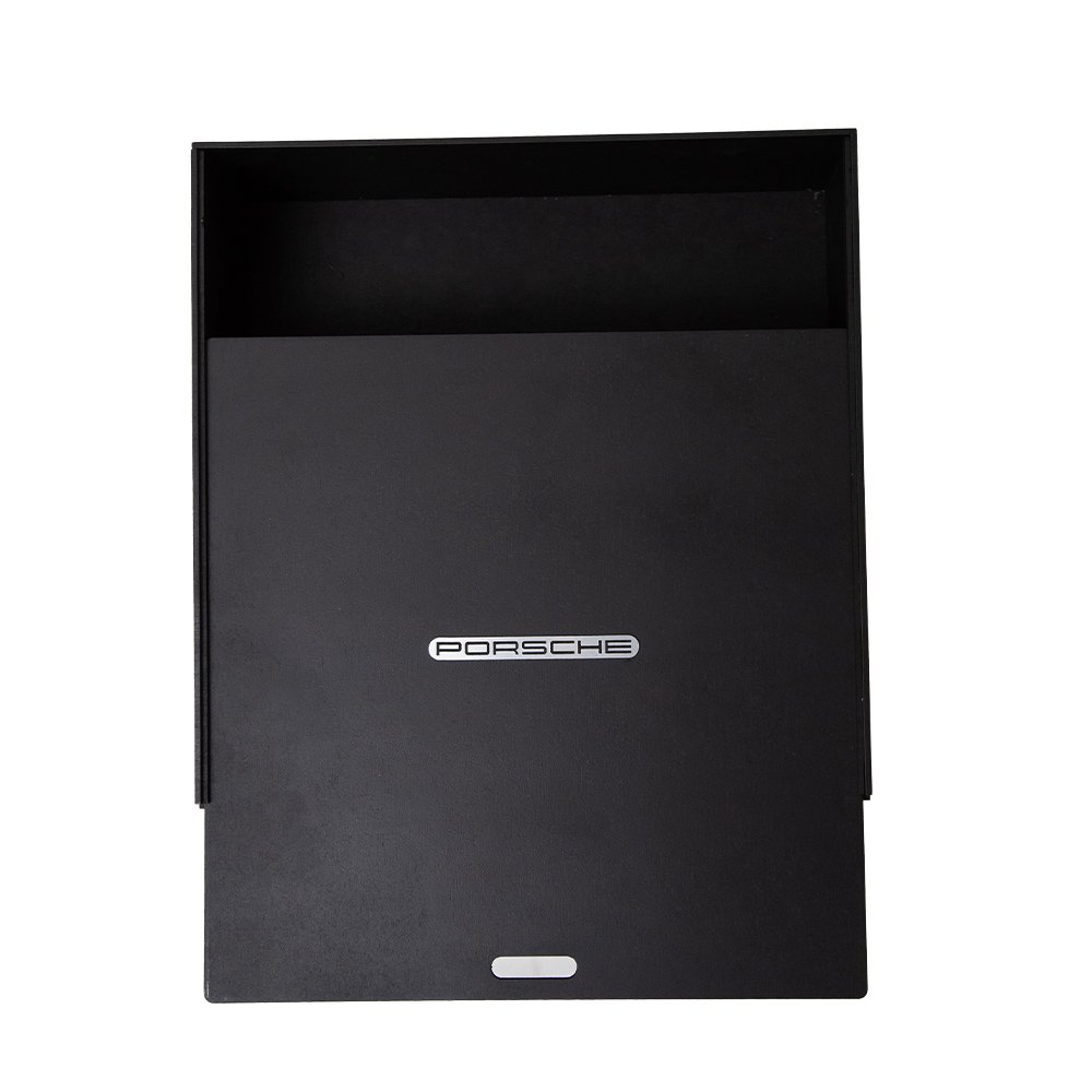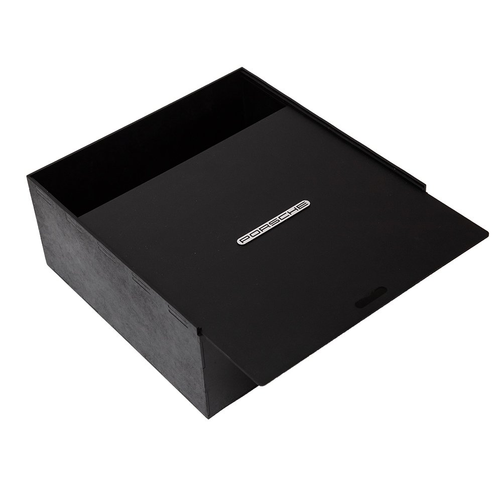 Caja de mdf negra con espuma interna. Con placa color plateada con logotipo o nombre del cliente.