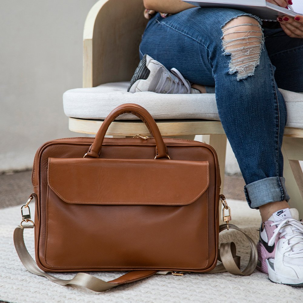 Éste portafolio es una mezcla entre el nuestro portafolio "Rumit", y nuestro portafolio "kompak", donde se diseñó basado en la medida del portafolio más pequeño agregando ciertos detalles del portafolio más amplio como: las asas de mano trenzadas, y que el ancho de éste portafolio fuera intermedio entre los dos portafolios mencionados. Así obtuvimos un gran resultado, con un tamaño mediano, funcional, elegante y práctico, donde permite cargar una computadora que sea de mayor grosor de 1.7 cm y que aparte tenga espacio para guardar documentos, cargador y otros accesorios personales como llaves, billetera, entre otros. Es un gran diseño para llevarlo a tus juntas de trabajo, a la oficina y es ideal para cuando salgas de viaje y puedas llevar todo en un sólo espacio. Éste modelo es ideal para viajar no sólo por su tamaño, sino porque cuenta en la parte trasera, con una tira especial donde entra la manija extraíble de la maleta carry on. Si viajas mucho con tu computadora, éste portafolio es el indicado para ti. El diseño es personalizable, desde elegir el color de la piel, elegir el color de los herrajes (dorado, o pavón), y el grabado que llevará (iniciales y/o logotipo) Colores: Miel, Café chocolate, Rojo, Azul marino, Negro.